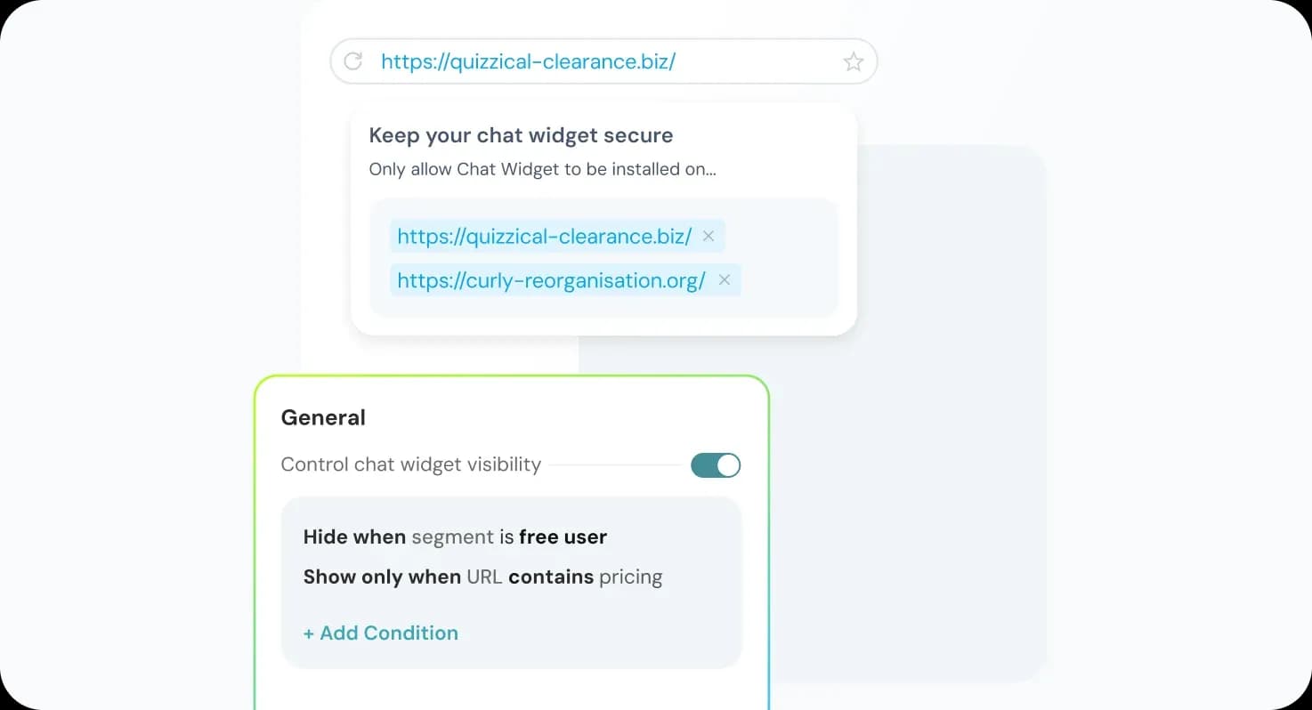 Smart widget placement - Define when and where your chat widget appears so it never interferes with your website’s user experience.